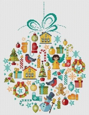 Cross stitch pattern from Les Petites Croix De Lucie featuring a bauble filled with Christmas elements!