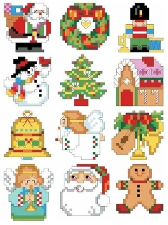 12 little Christmas motifs are presented here for your stitching pleasure. These tiny designs work up quickly and can be used for a variety of holiday purposes. Ornaments, canning jar lids, gift tags, and invitations; the list is endless.
