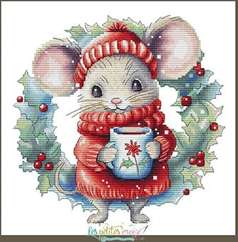 Cross stitch pattern from Les Petites Croix De Lucie featuring a mouse dressed for Christmas!