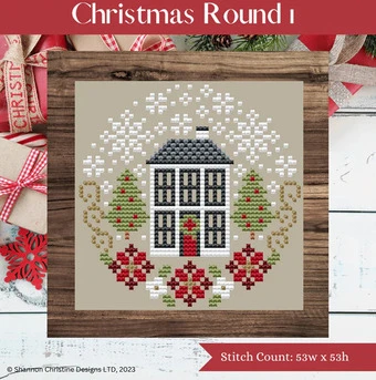 Cross stitch pattern from Shannon Christine featuring a home decorated for Christmas!