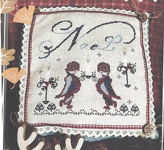 Cross Stitch pattern from Stitches And Style featuring two boys at Christmas with the word Noel!