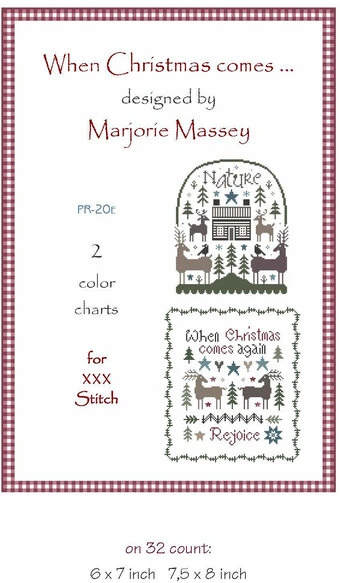When Christmas Comes features 2 charts by Marjorie Massey featuring Nature with reindeer and When Christmas Comes Again – Rejoice.